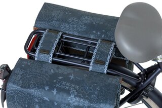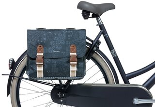 De Basil Bohème dubbele fietstas is een dubbele fietstas met een stijlvolle bohemien print. De blauwe tas heeft een inhoud van 35 liter waardoor je er meer dan genoeg boodschappen, sportspullen en andere benodigdheden in kwijt kan. Een fietsrit naar de supermarkt of een fietstrip met vriendinnen, deze fietstas maakt jouw fietsrit makkelijker en leuker. De fietstas is geschikt voor diverse bagagedragers (ook e-bikes) en beschikt over een stevige binnenvoering en kunstlederen details.